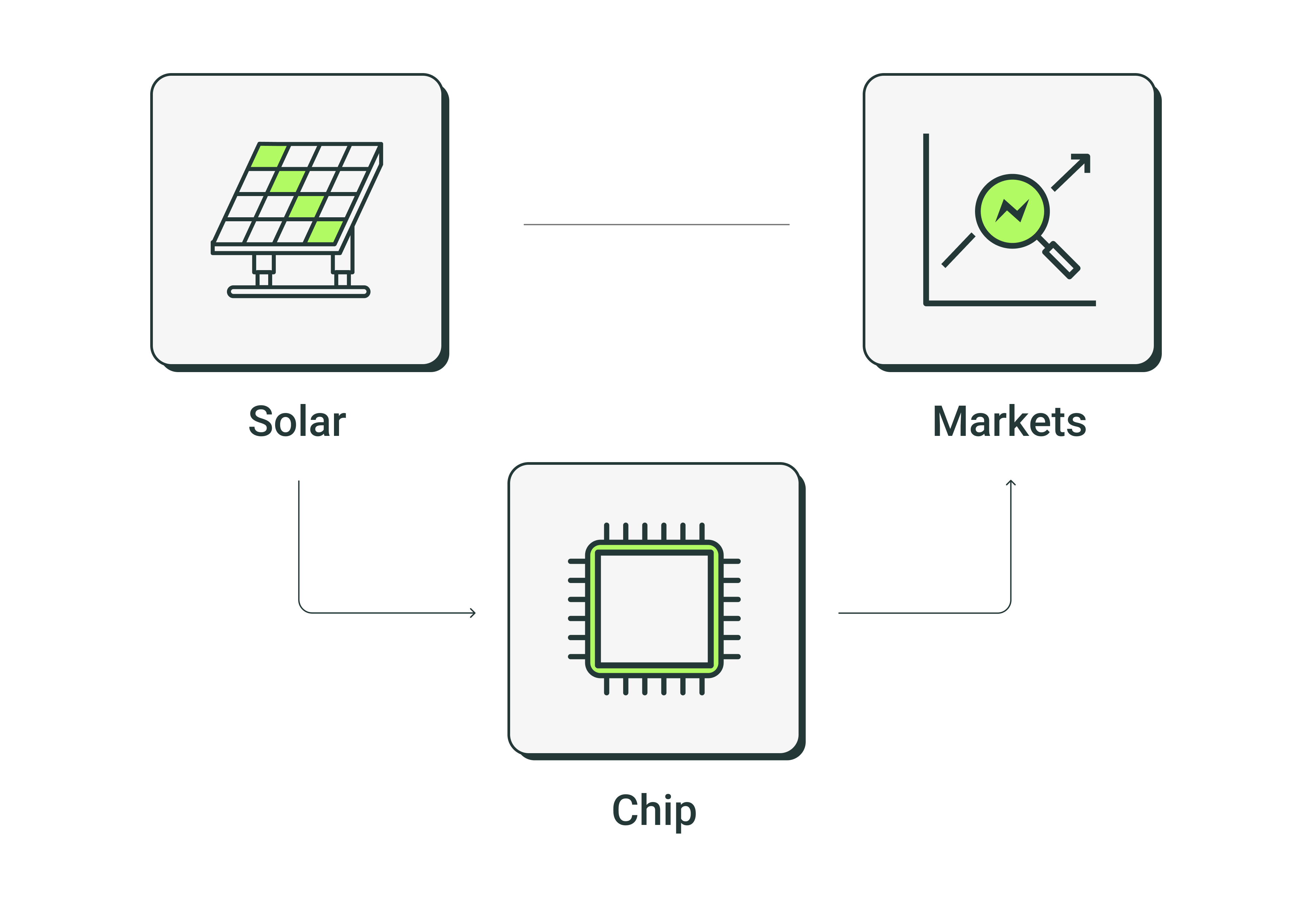 The integration of this chip into SYNC-AEIR's system aims to enhance the efficiency and profitability of solar energy systems, providing users with a reliable tool for energy management and market participation.